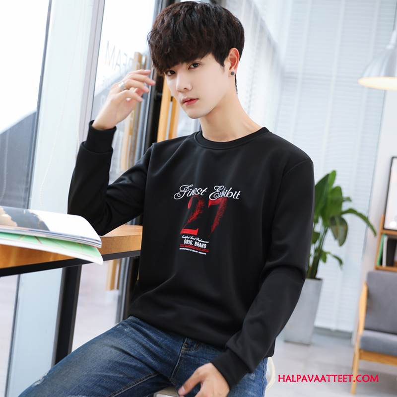 Miesten Huppari Osta Syksy Pyöreä Kaula Takki Pitkähihainen T-paita Suuntaus Musta