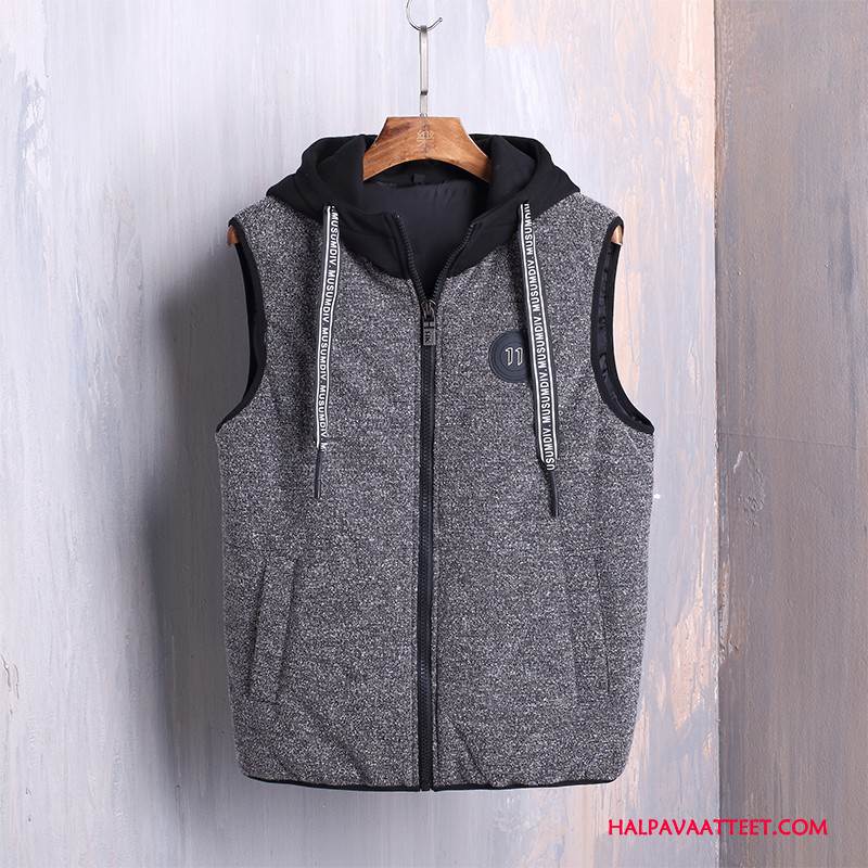 Miesten Liivi Halpa Nuoret Casual Miehille Hupullinen Talvi Harmaa