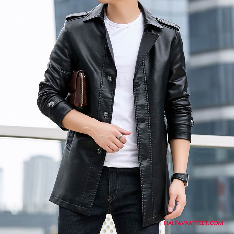 Miesten Nahkavaatteet Halvat Komea Nahkatakki Suuri Koko Pu Nahkaa Ohut Musta