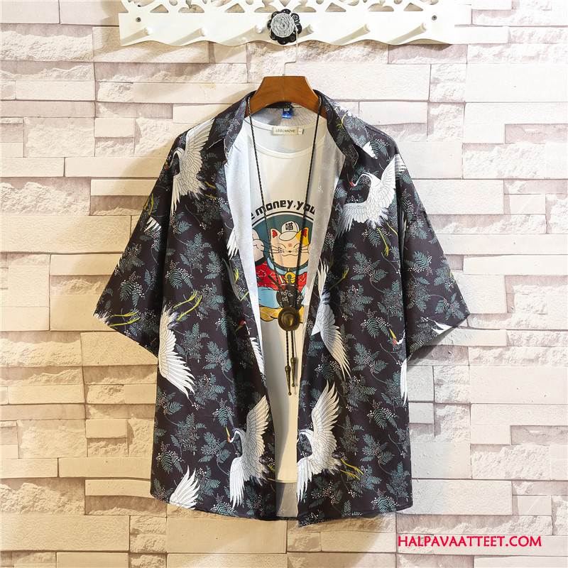 Miesten Paita Verkossa Kaunis Kauluspaida Painatus Suuntaus Komea Tummansininen