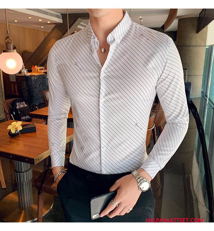 Miesten Paita Verkossa Tiukka Kauluspaida Miehille Ruudullinen Komea Valkoinen