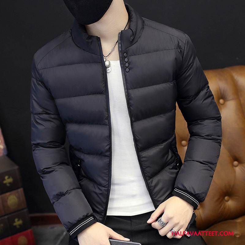 Miesten Puuvilla Takki Halvat Pitkässä Osassa Tiukka Talvi Casual Uusi Musta