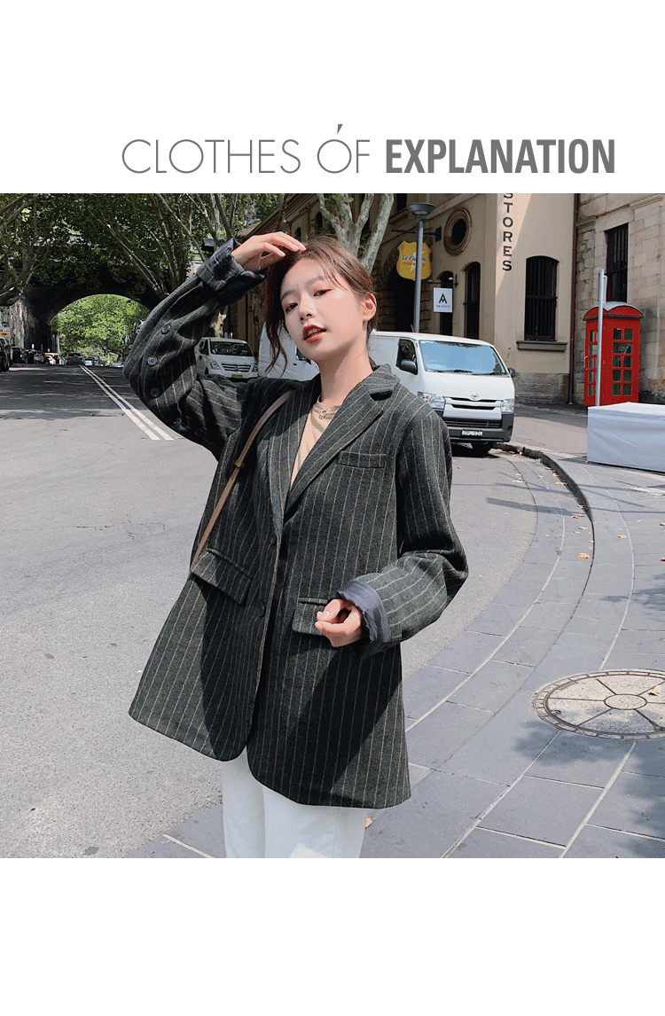 Naisten Bleiseri Myynti Uusi Syksy Villaa Raita Puku Khaki