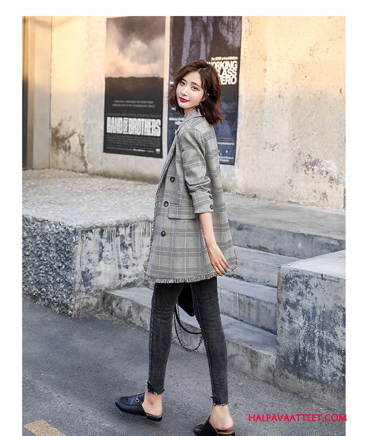 Naisten Bleiseri Verkossa Uusi Muoti Ruudullinen Englanti Jakkupuku Harmaa Punainen