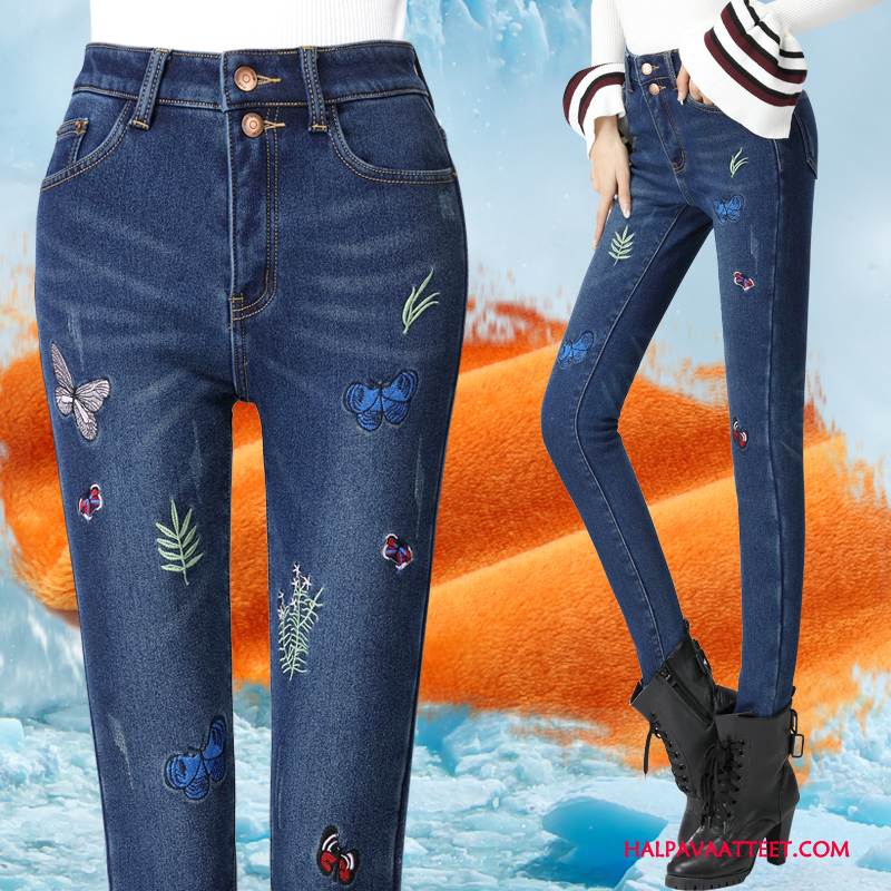 Naisten Farkut Tarjous Housut Paksut Casual Kirjonta Talvi Musta