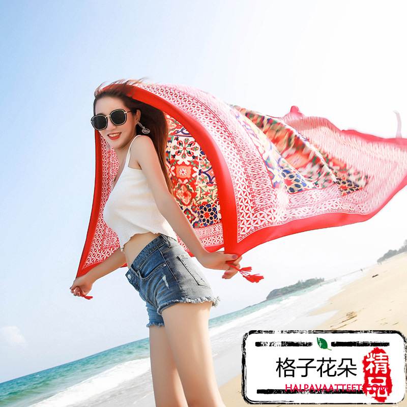 Naisten Huivi Verkossa Etninen Kesä Ranta Painettu Matkustaminen Pinkki