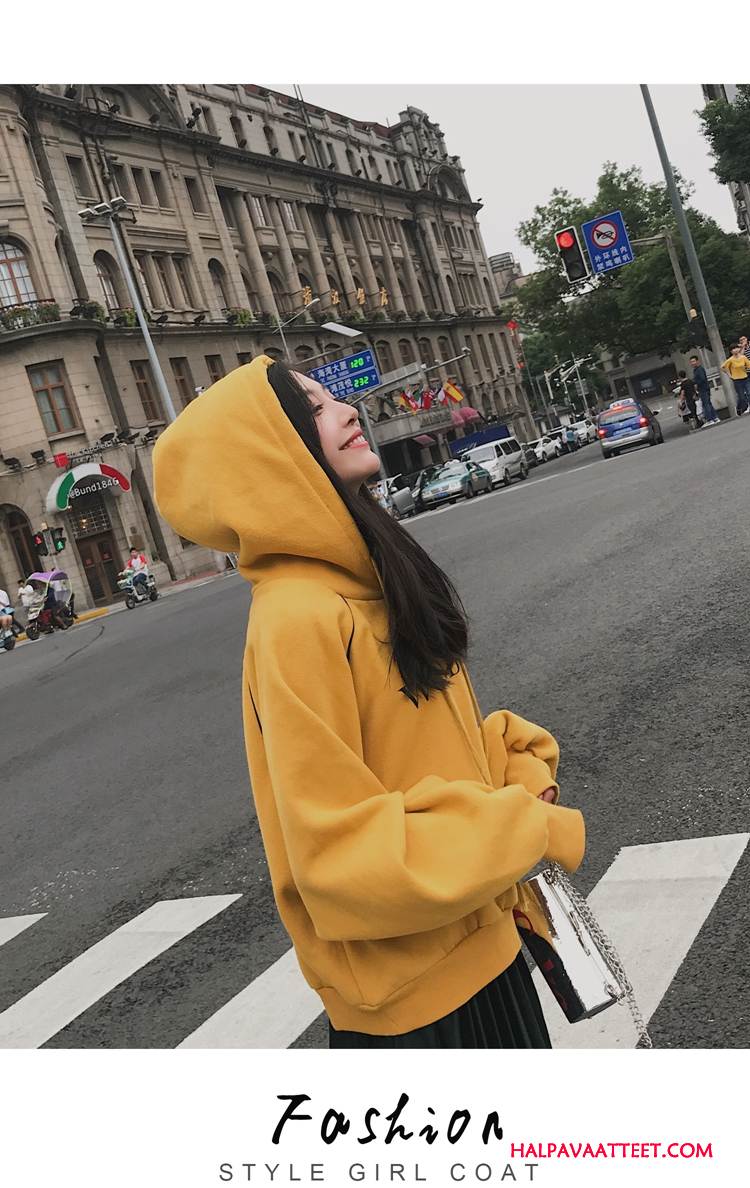 Naisten Huppari Myynti Muoti Persoonallisuus Ohut Hupullinen Tiukka Puhdas Keltainen