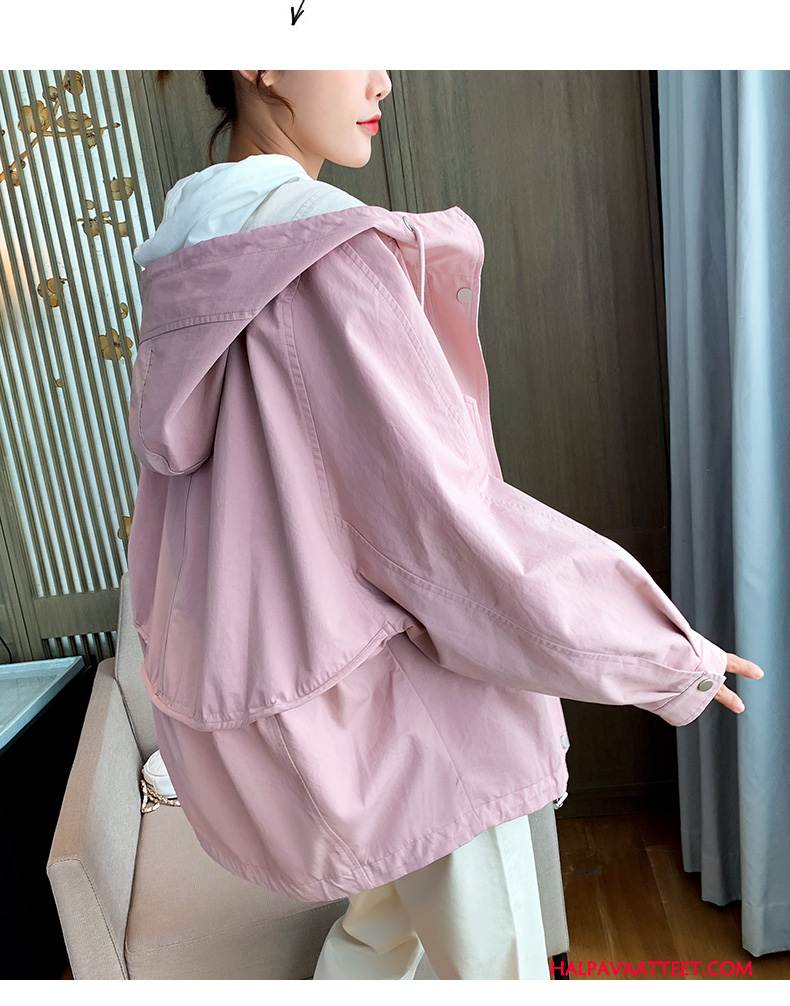 Naisten Lyhyt Takki Verkossa Hupullinen Casual Baseball Naisille Löysät Pinkki