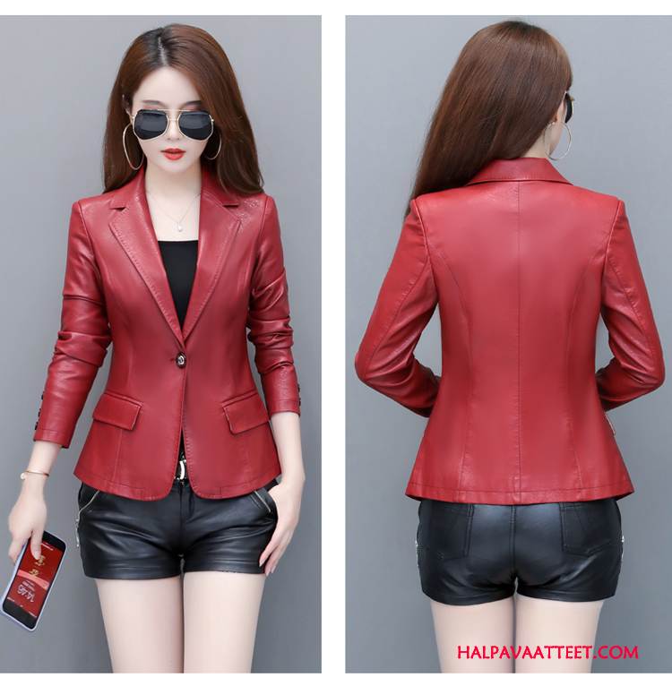 Naisten Nahkavaatteet Halvat Takki Opiskelija Syksy Löysät Uusi Punainen