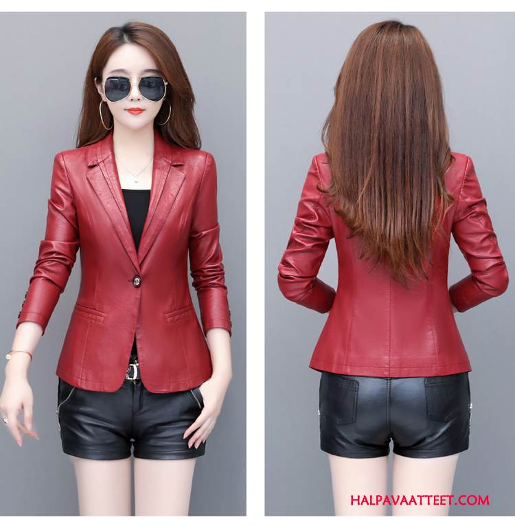 Naisten Nahkavaatteet Verkossa Naisille Takki Uusi Nahkatakki Ohut Punainen