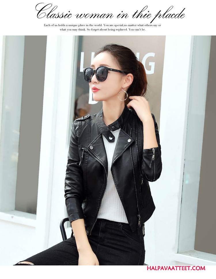 Naisten Nahkavaatteet Osta Holkki Nahkatakki Muoti Tyylikäs Kevät Puhdas Musta