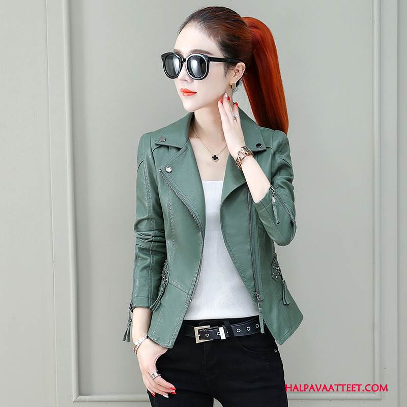 Naisten Nahkavaatteet Myynti Takki Moottoripyöräpalvelu Pu Nahkaa Nahkatakki Lyhyt Vihreä