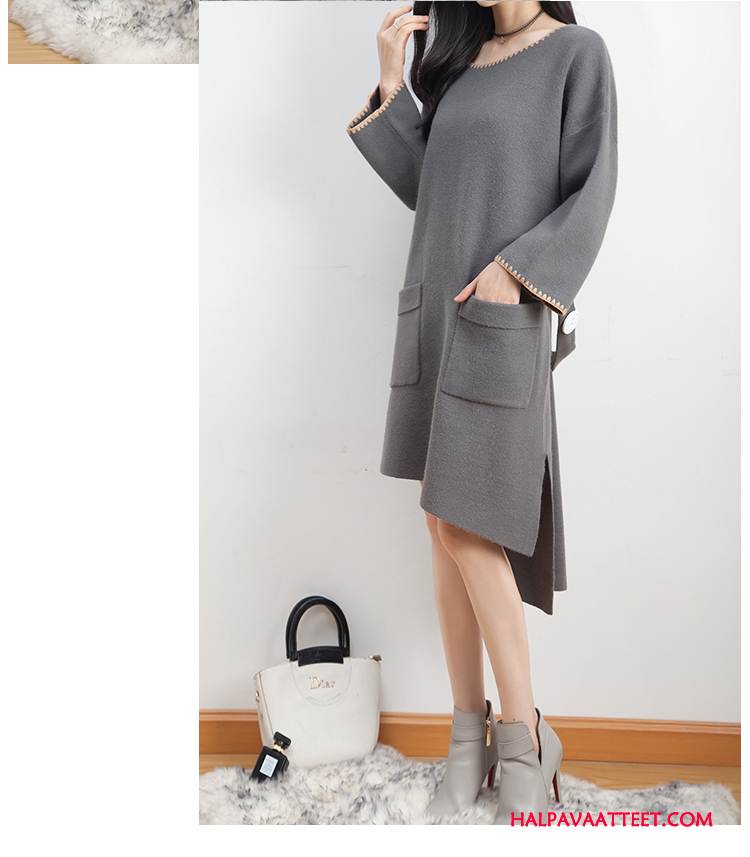 Naisten Neuletakki Myynti Syksy Pitkät Hihat Villapaita Löysät Neulottu Paita Puhdas Harmaa