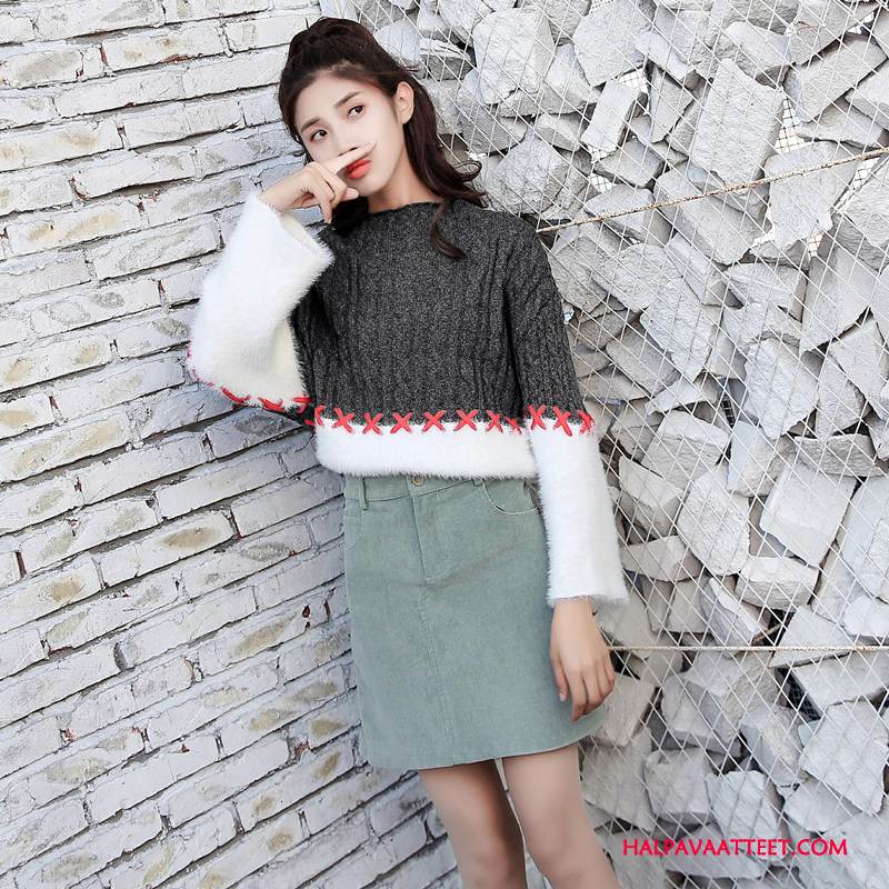 Naisten Neuletakki Halvat Korkea Kaulus Villapaita Neulottu Paita Talvi Pitsi Harmaa