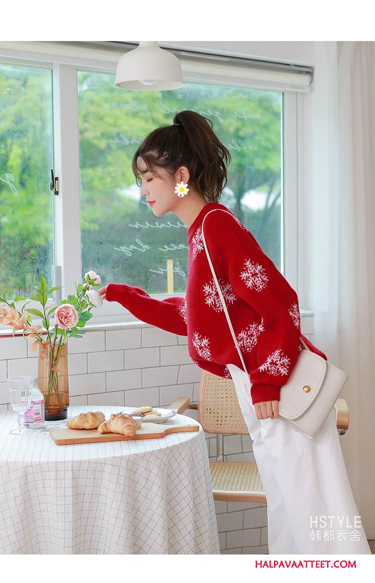 Naisten Neuletakki Osta Kukka Opiskelija Neulottu Paita Syksy Villapaita Punainen