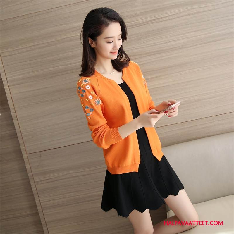 Naisten Neuletakki Osta Neulottu Paita Tiukka Lyhyt Kukkia Syksy Oranssi