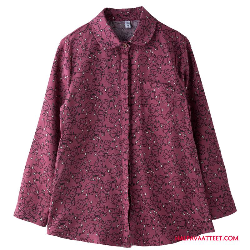 Naisten Paitapusero Halvat Suora Pitkässä Osassa Pitkät Hihat Syksy Ohut Punainen