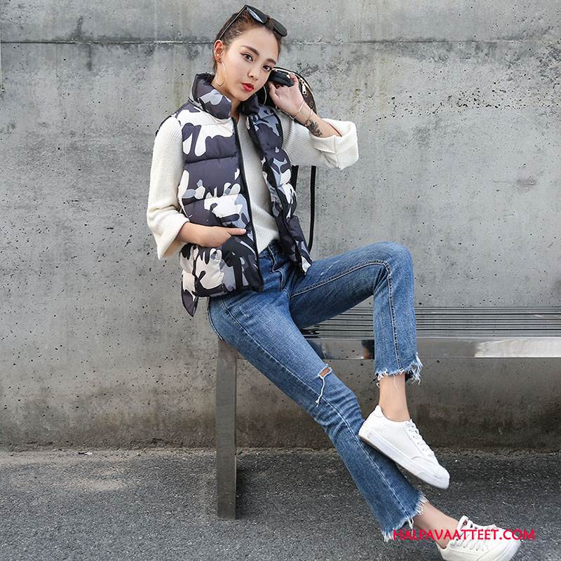 Naisten Puuvilla Takki Halpa Muoti Hihaton Katu Vetoketju Suora Harmaa