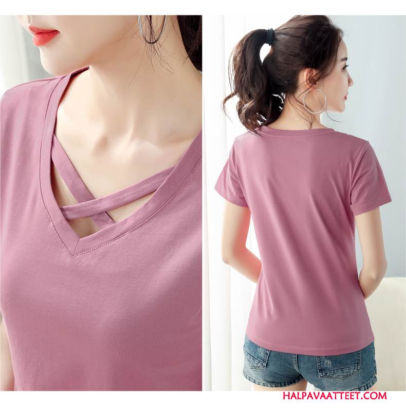 Naisten T-paidat Halpa V Kaula Uusi T-paita Lyhythihainen Takki Punainen